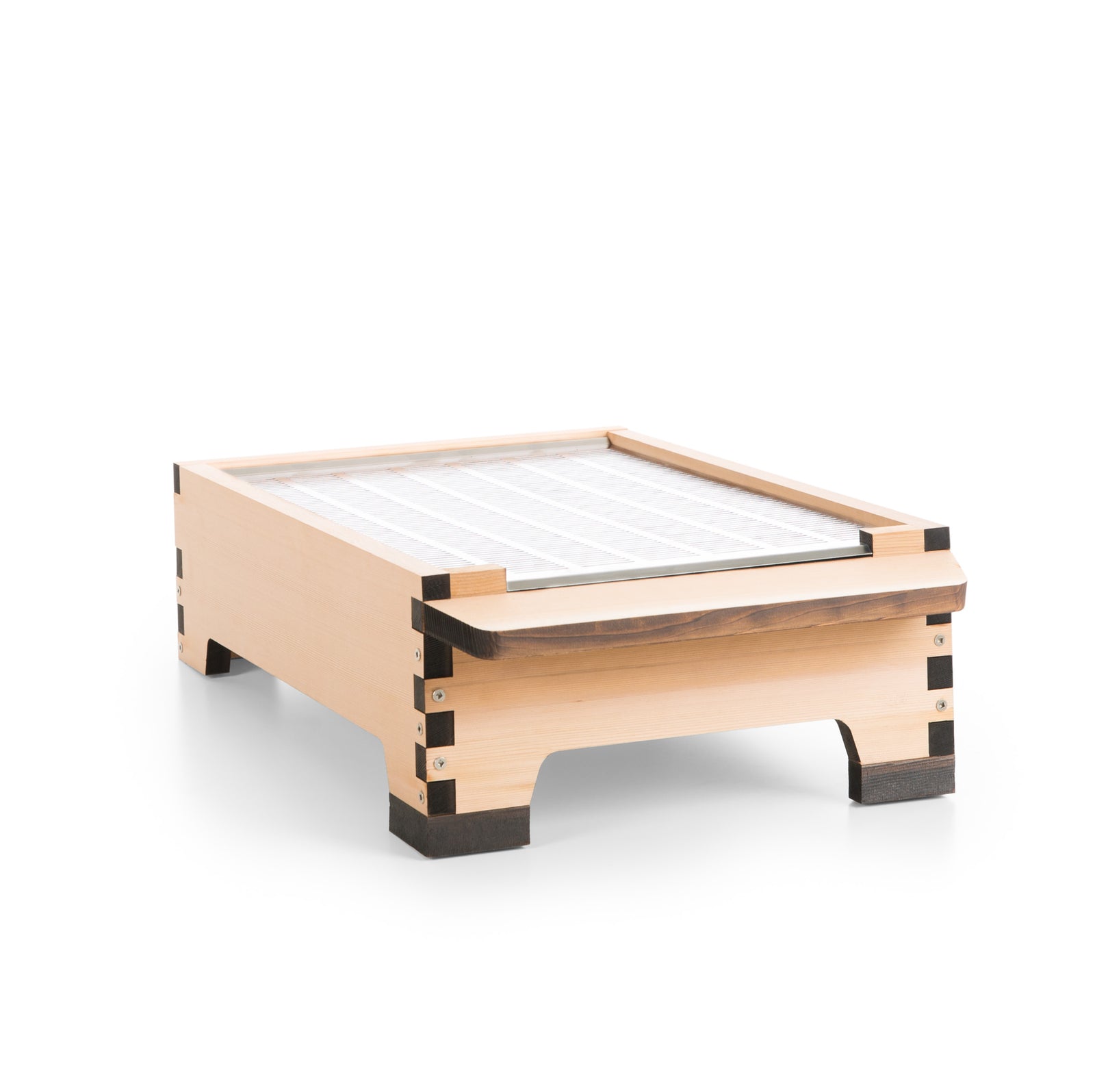 An elegant solution for keeping ants out of your hive, the Flow Hive Base & Stand features adjustable Flow Ant Guards™ made from 100% recycled polypropylene, creating space for a liquid barrier on each leg of your stand. Thoughtfully designed for pest management, ventilation control, and overall functionality, it also includes built-in spirit levels for the optimal hive setup, a multifunctional tray for hive observations and treatments, and adjustable ventilation to suit every climate.