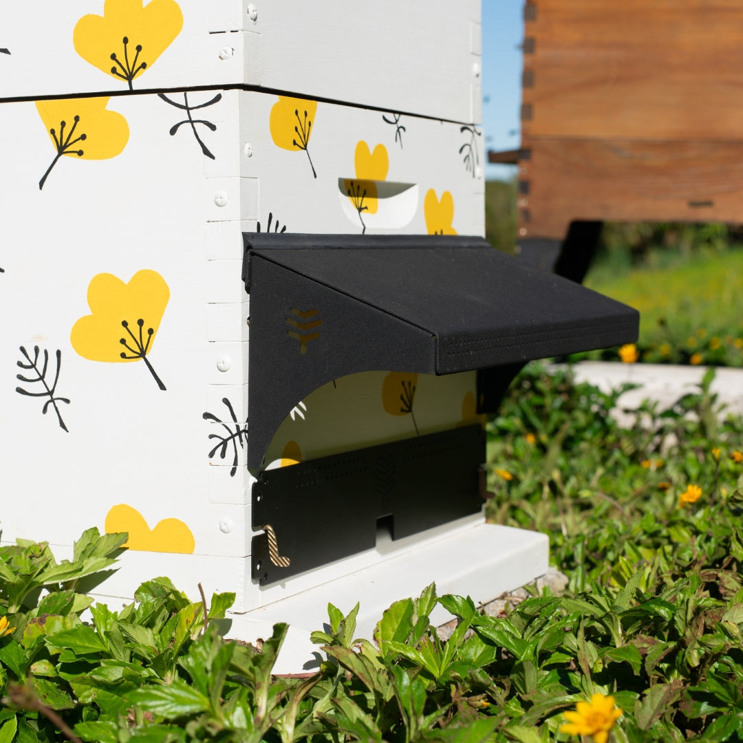 The Flow Weather Guard is a handy hive accessory designed to offer extra protection for your colony by protecting the entrance of your hive from weather conditions including rain and snow.